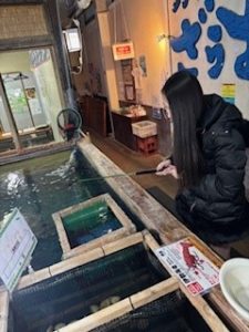 釣りが楽しめるお店に行き、縞鯵を釣り、