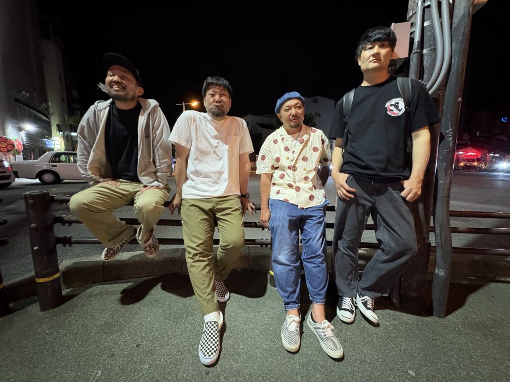 ニューワン(Vo/Gt) 、ヒナコナヒ(Vo/Ba)、ミチロウ(Gt)、ワムウ(Dr)。