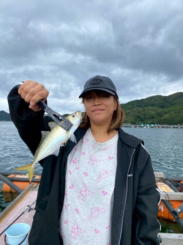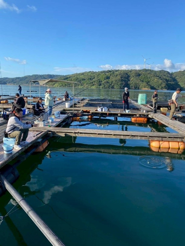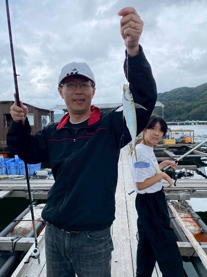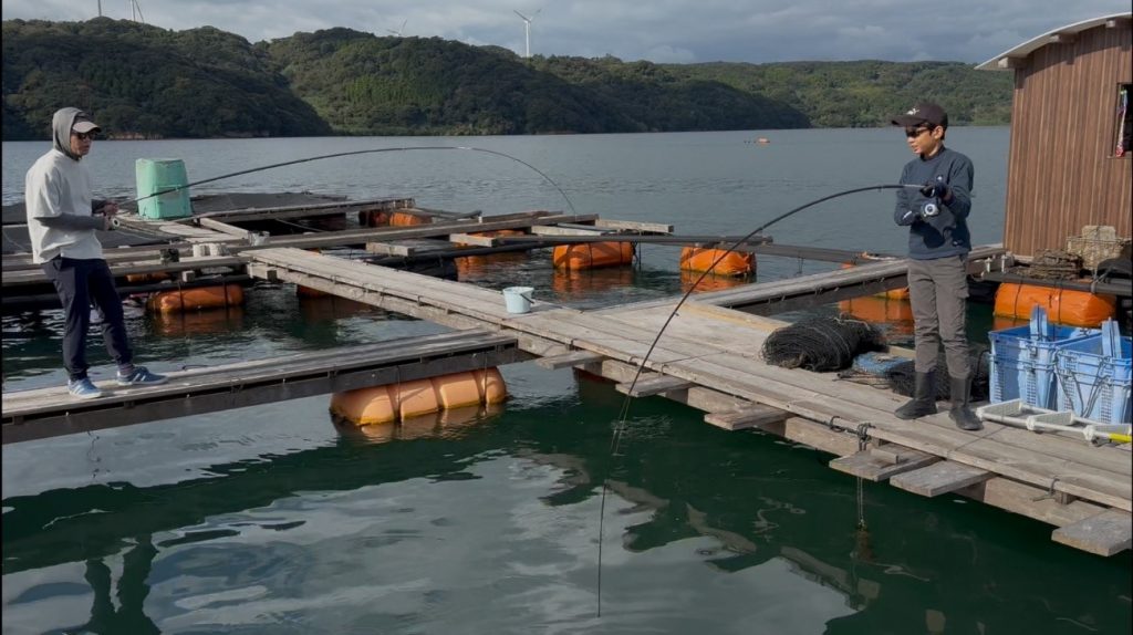 仮屋湾に浮かんでいる養殖用筏の上で、良型アジを狙ったサビキ釣り教室が開催されました!