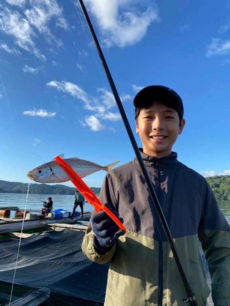 この後お子さんがアジを餌に泳がせ釣りにチャレンジ!