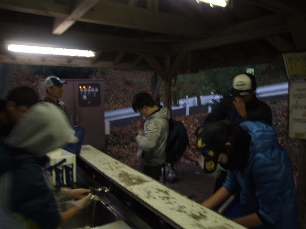 生憎の天候&低気温ということもあり王禅寺インストラクー永井さんによる竿やリールノセッティング方法からルアーの結び方等のレクチャーは室内で行いました。