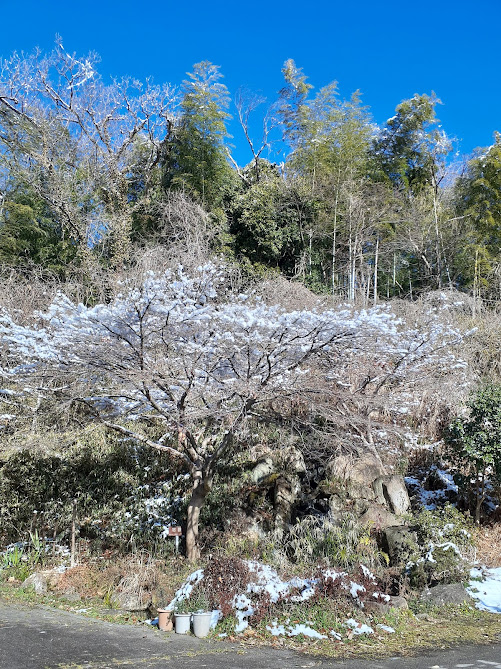 クラブハウス横にある観賞用のもみじの木、先日降った雪が葉の上に残ってるのが