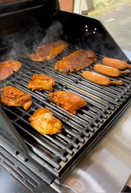釣りと一緒にBBQ!全ブースに設置している「アメリカンガスグリル」は、厚みのあるお肉を焼くのに最適です!