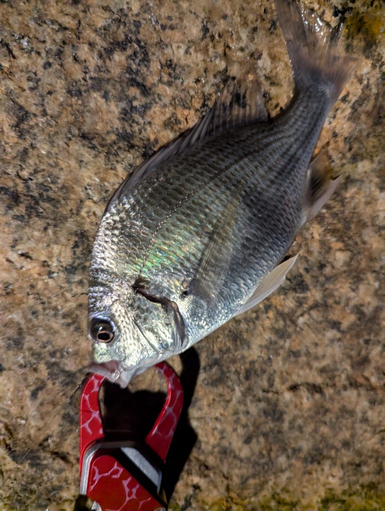 サイズアップをしたいなぁと思っていると竿先に鈍いアタリ!