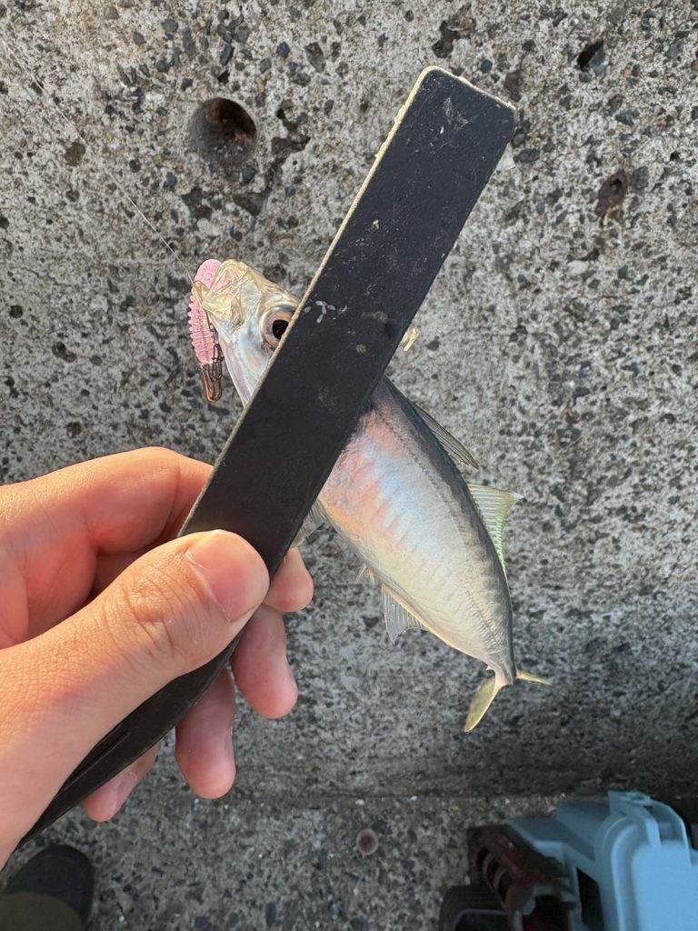 周りでは、さっそくサビキで良型のアジがあがっていました!
