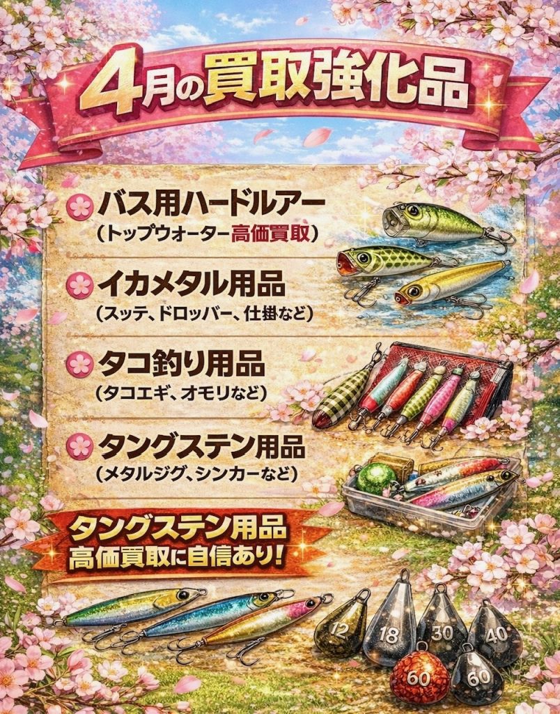 【タックルベリー寝屋川店】4月の買取強化品🎵【大量買取持込大歓迎】