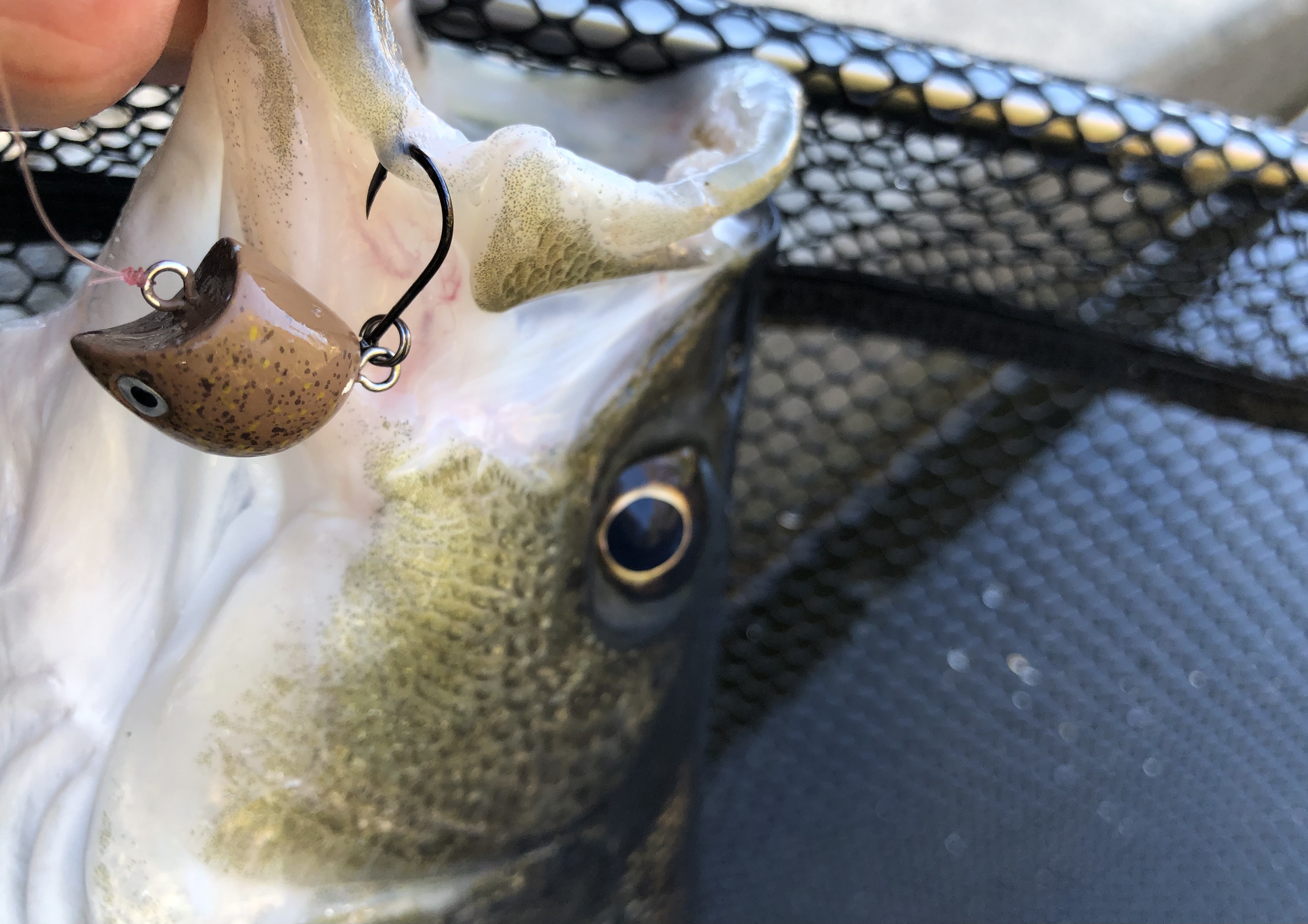 刺さり込みを重視してシングルフックに変更、水面近くで見切るのでリーダーもDUELの魚に魚に見えないピンクフロロショックリーダに変えると…
