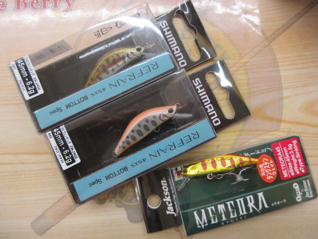 シマノのリフレインやジャクソンのメテオーラといった渓流ミノーも届いています!