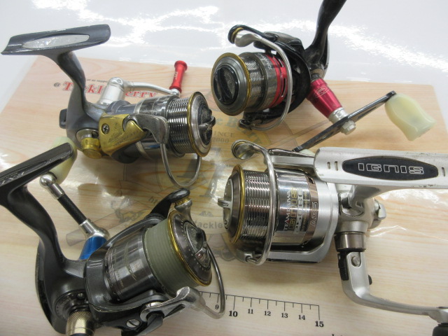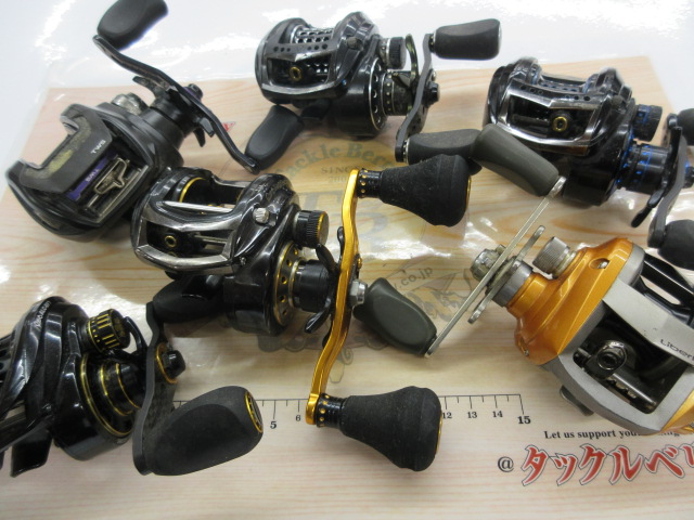 リールもたくさんお持ち込み! ありがとうございます! カスタム品やパーツ一部欠損のワケあり品なども。だけどいずれも使用可能ですよ~