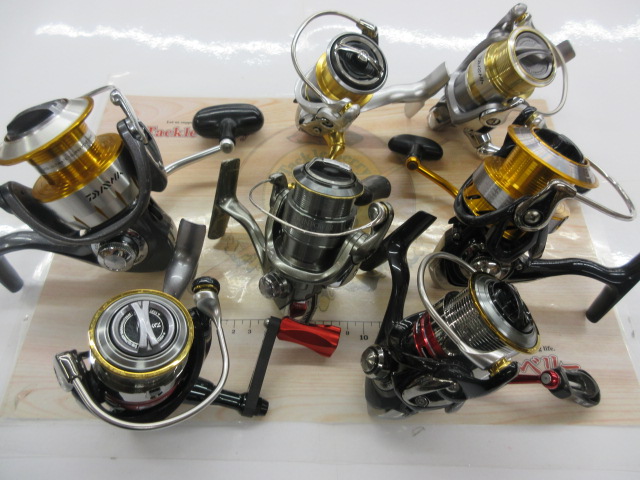 スピニングリールの一部はこんな感じで、入門向け~中価格帯、それとカスタムのリールも目立ちました。