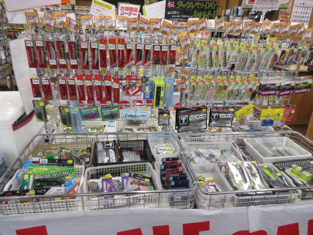 買取品ですが、すでにルアー、餌用品は大部分を店頭に出しましたが、最後の大量買取品(カウンタ前にあったもの)も本日店頭に出す予定です。ロッド、リールも大部分は本日中に店頭に並びますので、中古狙いの方もぜひご来店ください♪