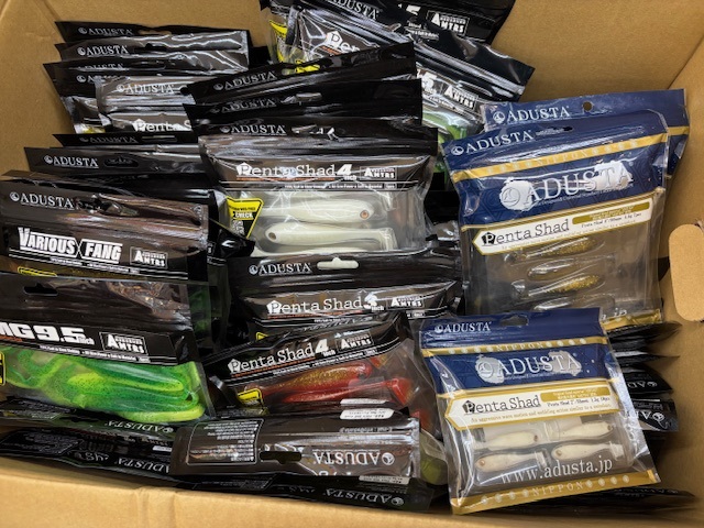 ワームはソルト、バス含め大半がアダスタ、ライトゲームに限り、ダイワの月下美人ジグヘッドがございます。