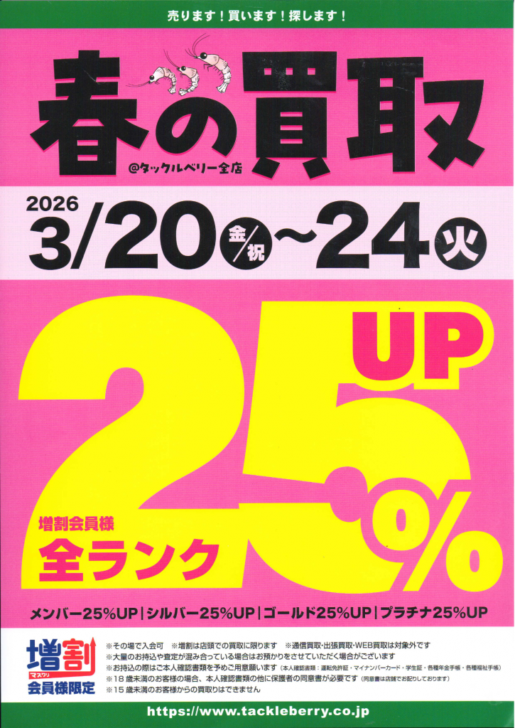 さて、今年の春の釣行準備はお済みでしょうか?買い替えをお考えの方や使わなくなった釣具を手放したい方必見です!!!