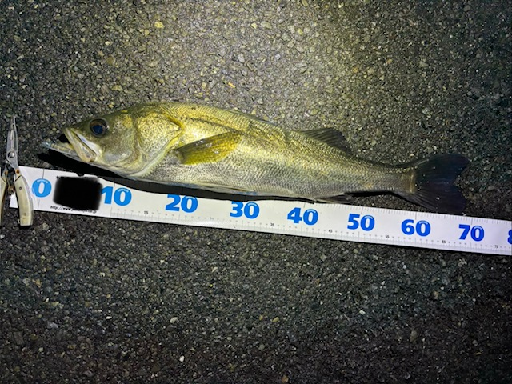 上がってきてくれたのはまさかの70cmジャストのマルスズキでした!タモを忘れてしまいどうしようと考えてる暇もなかったので腕を極限まで伸ばしてのハンドランディングでした笑笑