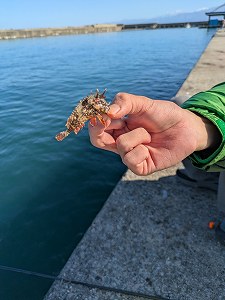 各漁港で釣れる種類も少しずつ変わっているので楽しめます!!この漁港ではカワハギ釣れましたね(笑)友人のバス持ちハオコゼと…笑(毒魚なので真似しちゃだめですよ!!)