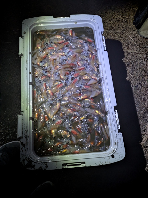 全員のも含めると3~40kgほどだと思います。 ホタルイカはしばらく湧き続けていました… 今月も、まだチャンスございますので是非挑戦してみてはいかがでしょうか!!5月までは狙えるのでおススメです!!