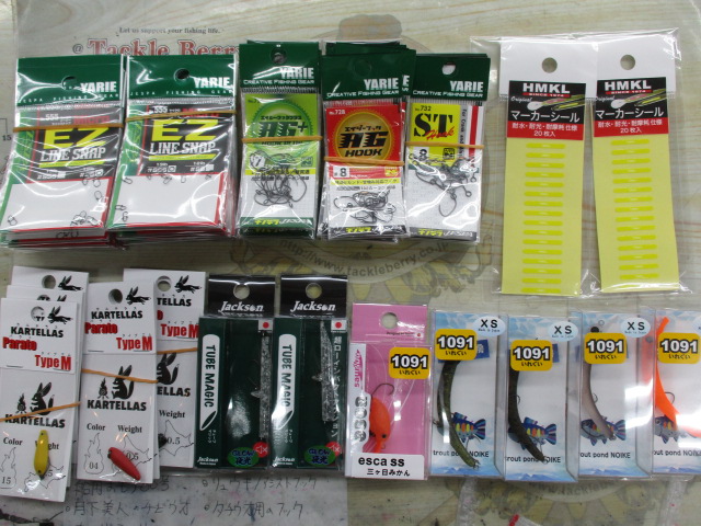 陰キャコラボ ポゴ、アップワード、シャチホコ、サカサニョロ、エリアのフックや渓流のハリス等入荷。