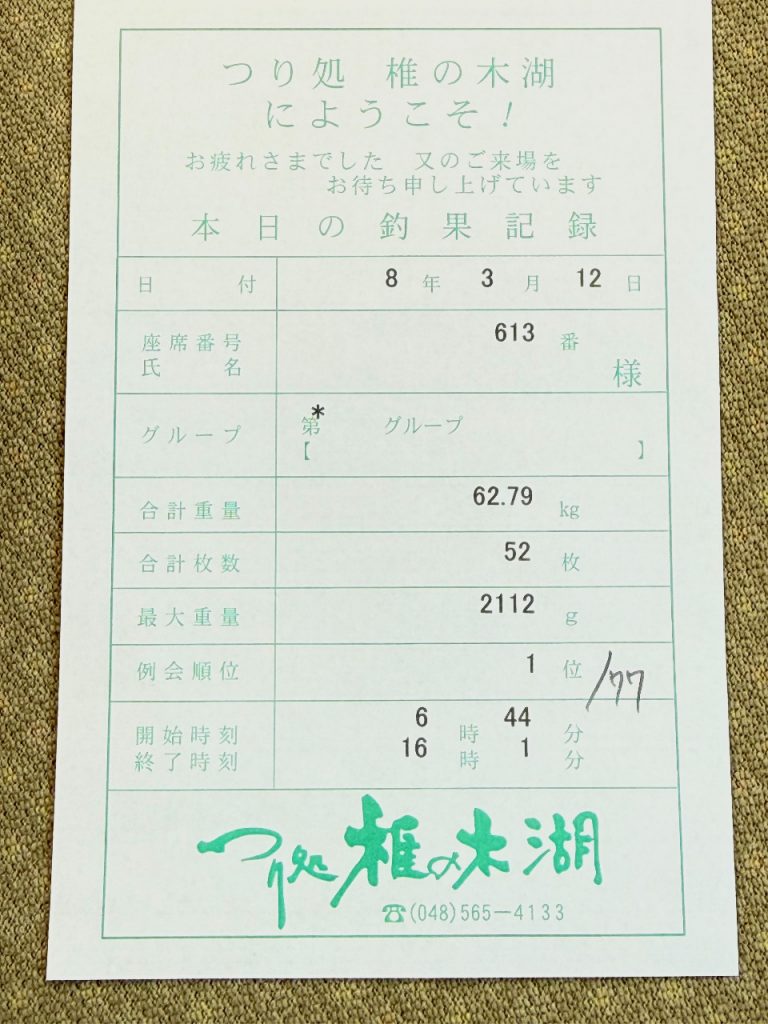 14時頃から徐々にペースダウンするも型がどんどん良くなり、終了30分前あたりから1400g以上が連発!