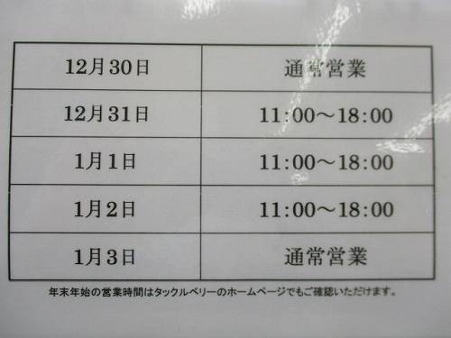 年末年始営業時間のご案内