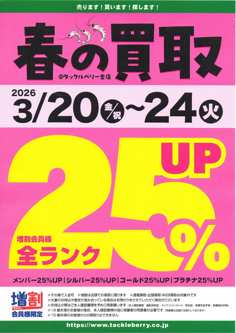 3/20(金)~3/24(火)の期間春の買取UPキャンペーン開催します!