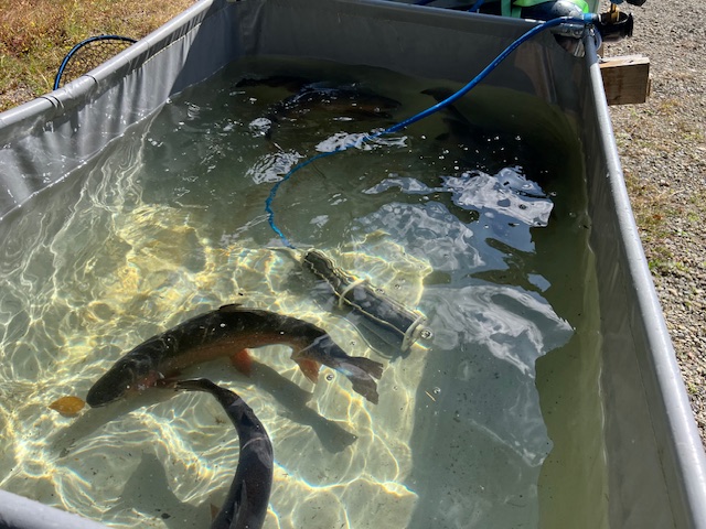 放流の時間になり、管理人さんのお手伝いをいします☆
