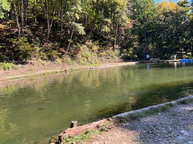 あいづさんは、、、栃木ブランド鱒の神山水産さんから仕入れを行っており、池に居る虹鱒君は