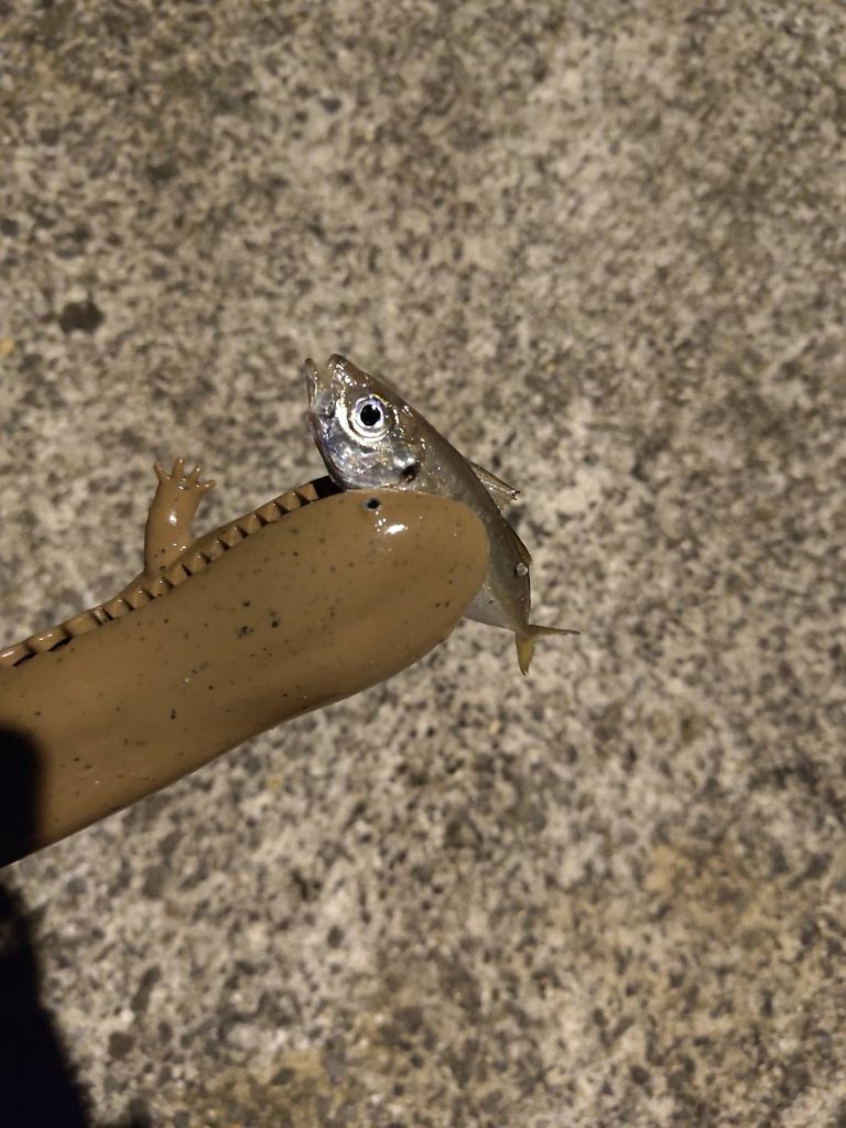 思いつつ、ジグヘッド0.3gに3インチワームと大きめに変更!
