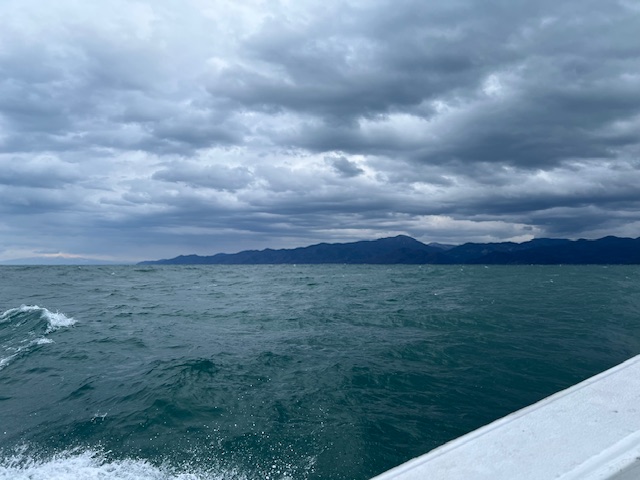 風はまずまずありましたが、船が大きいので波を割ってポイントへ!