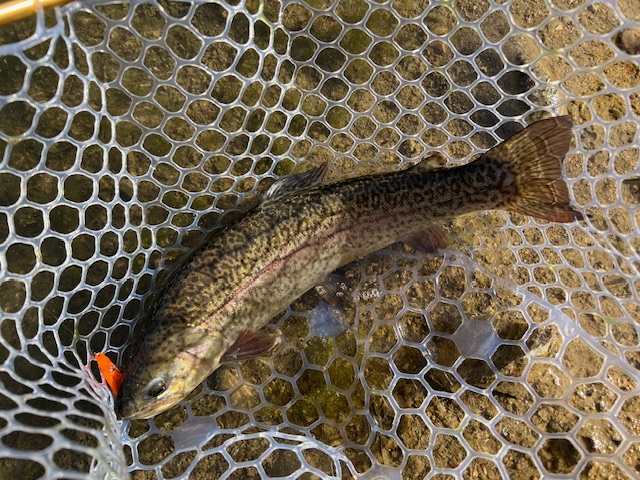 日が上がり水温が変化しミノーに反応するかな~とまたミノーで狙ってみ鱒!