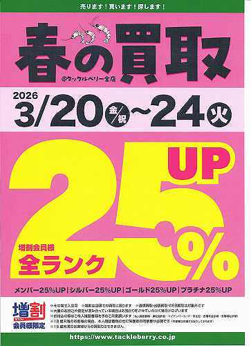 3/20~3/24の期間中、通常よりも買取査定額が25%もアップする買取強化キャンペーンを実施します!!