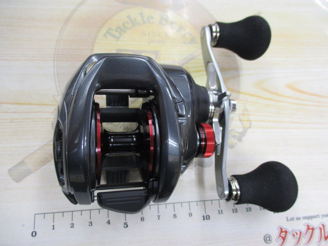 ハンドルノブに若干のテカリあり。リールフットに装着跡あり。ハンドル回転に若干のシャリ感あり。