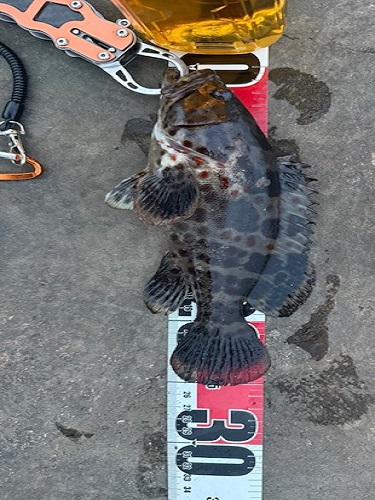なんと、同行者のチニングの仕掛けにチャイロマルハタがヒットしました!!!