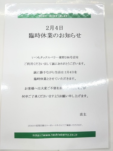 【再告知】2月4日臨時休業