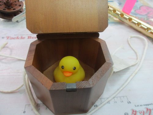開けてみたら沖縄浦添には隠れマスコット化しているアヒルさんも余裕ある程度には大きくて深めな小物入れorエサ入れ・・・どちらか分かりませんが木製でなかなか見ない道具は面白いですね(*´з`)