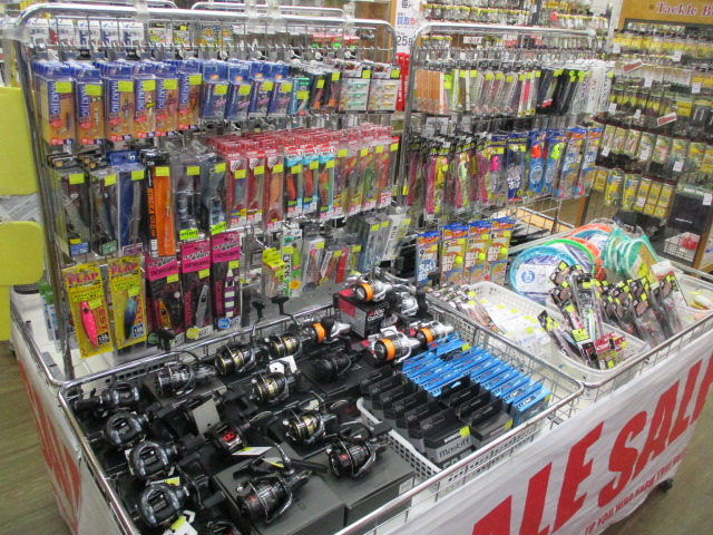 ロッドにリール、バス・トラウト・ソルト各種ルアーとワーム、タックルBOXなどの釣り用品が大変お安くなっております!