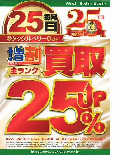 思います。(25日にお持ち込みしていただいたものはもちろん25%UP適用になります。)