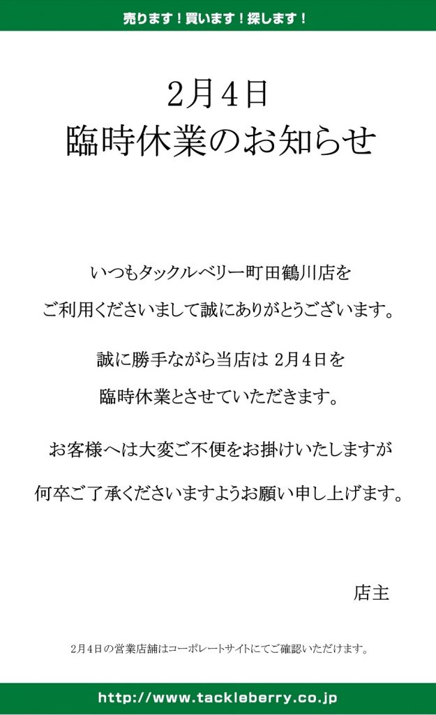 【お知らせ】休業日と増割について – 町田鶴川店(Machida Tsurukawa)