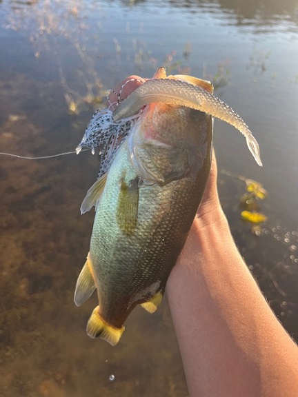 先日は夕マズメに野池へ。最近個人的に色々検証中の「チャターベイト」を片手にランガン。すると…