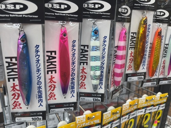 ノーマルは60gと80g。太刀魚モデルは100gと130gが入荷していますので、水深や状況によって使い分けてみて下さい♪