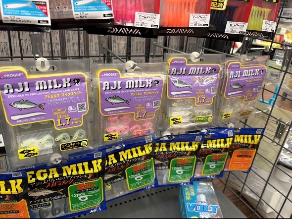 安定した釣果をもたらしてくれると評価の高いアジミルクシリーズ。今回のはカーリーテールですね。一匹一匹ちゃんと目が付いててカワイイ。