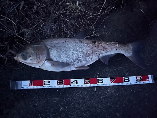 スイムベイトにガッツリ食ってきたのはメーターちょいのハクレン。流石に君は想定外…(笑)
