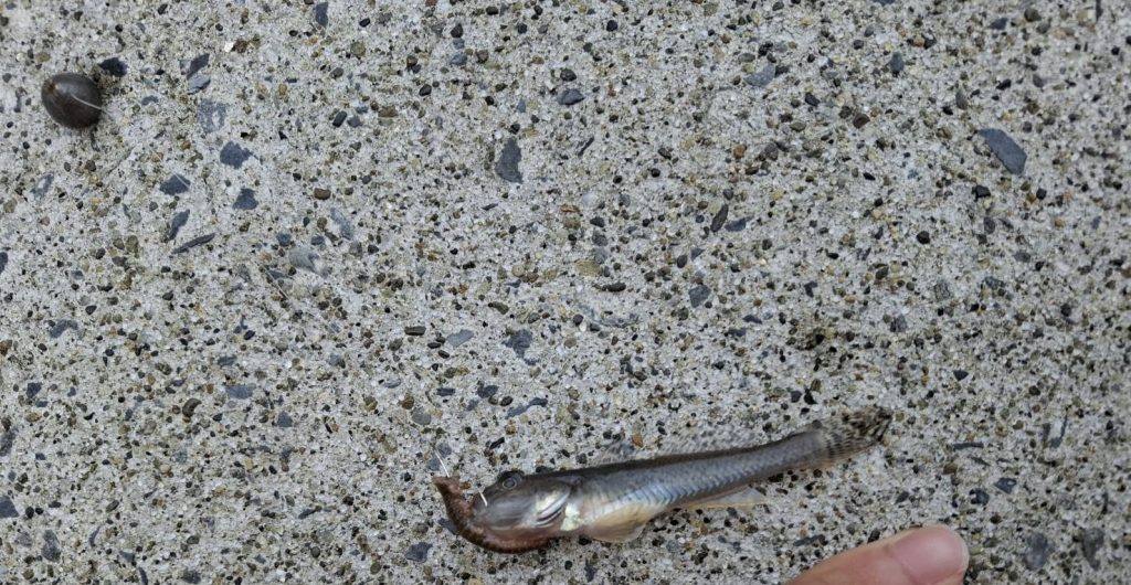 場所が大事ですね。移動したらアタリたくさんでした。1回だけそこそこ大きそうなのが掛かりましたが直前でバレました。まあハゼでない可能性ありましたね