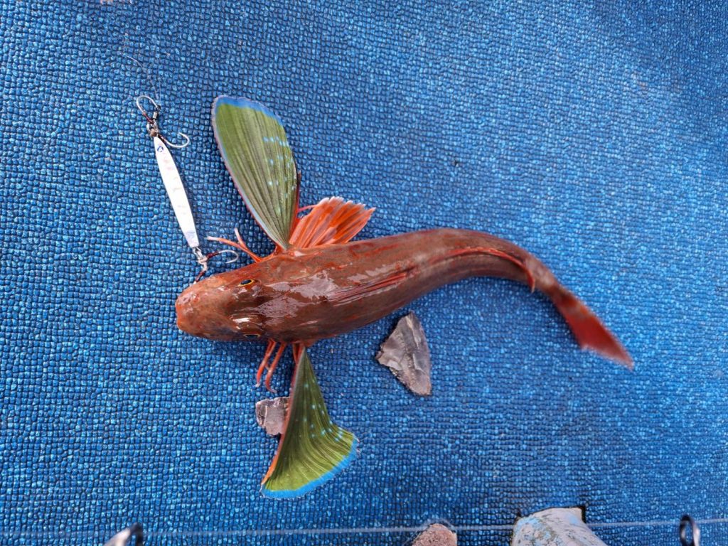 気分転換にジグを変えて釣れたのはホウボウ。