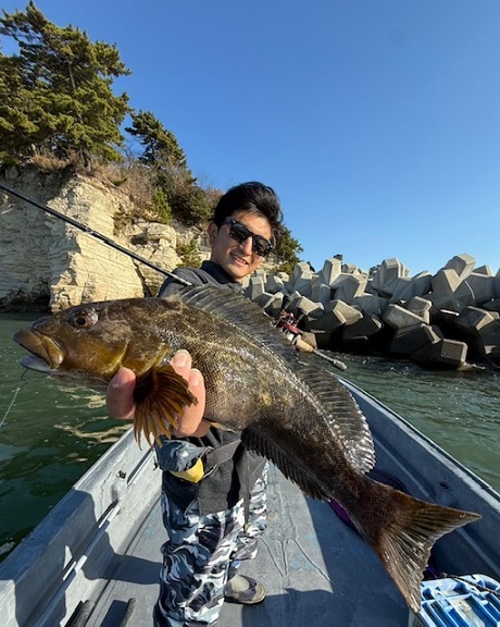 ナイスな40アップが釣れました!!こいつはカッコイイ!!そして宮田の髪がヤバイ!(笑)