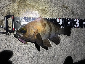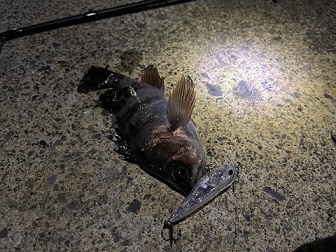 サイズは可愛いですが初めてのメバリングでしかもプラグで釣れて嬉しかったですね。