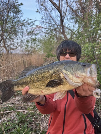 今年初の野生バス!48㎝のナイスサイズでした。宮田ガイドにてGET!ヒットルアーはタックルベリー×プロズワンのコラボカラーのスパイニークローでした。