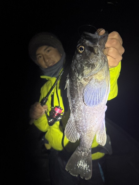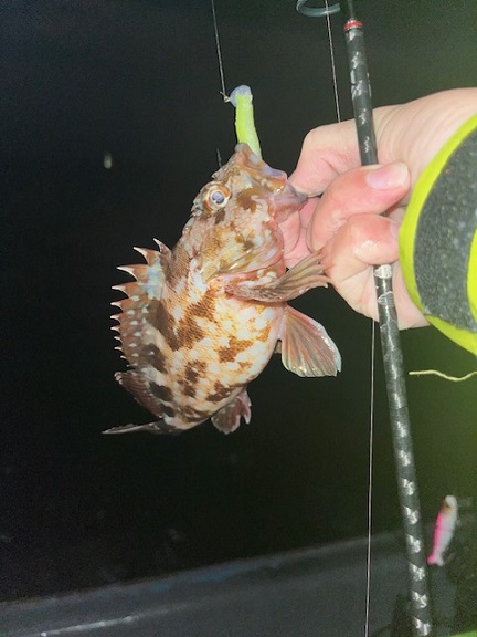 ちなみに、お気付きの方もいらっしゃるかと思いますが、今回の魚はぜんぶスピニングタックル、もっと言うと宮田のメバリングタックルにてキャッチ。最近、ボートでのナイトロックではこのセッティングにハマっています。糸がPE0.4号なのでファイトも楽しい。
