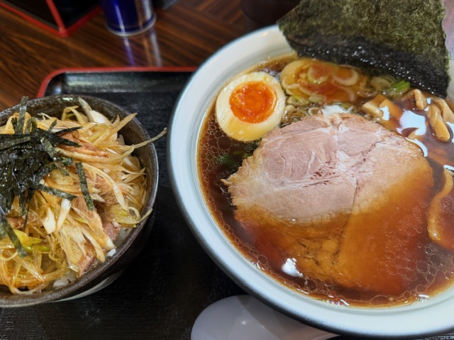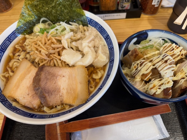 けんちゃんインスパイアの中華そば大盛り+チャーシュー丼を😋