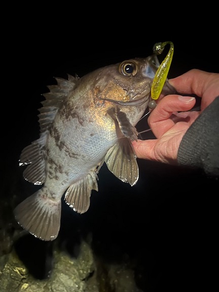 しっかり尺メバル。ジャストでしたが30センチでした。一発がデカい釣りは魚種問わず楽しいですね。ワームは安定のハゼドンシャッド3インチ。当店在庫ございます。