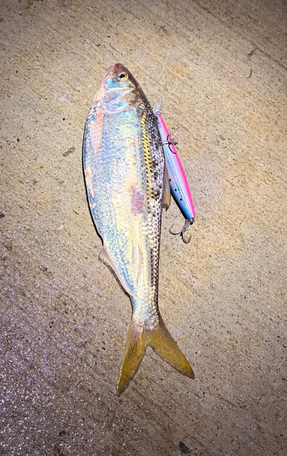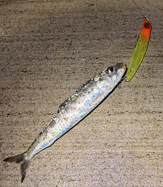 イワシが水面に溜まっていたので、ルアーでイワシ釣り